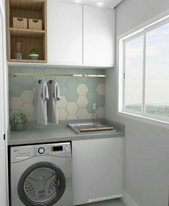 Apartamentos e casas pequenas vêm se tornando tendência. Com o espaço reduzido, as lavanderias têm cada vez menos espaço ou até são planejadas como um anexo da cozinha, sem paredes de divisão.