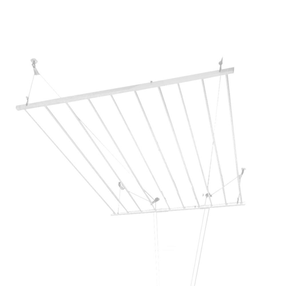 Instalado em teto de laje ou em teto com rebaixo de gesso, utilizando sistema seguro e apropriado para não danificar e suportar o peso do varal.
